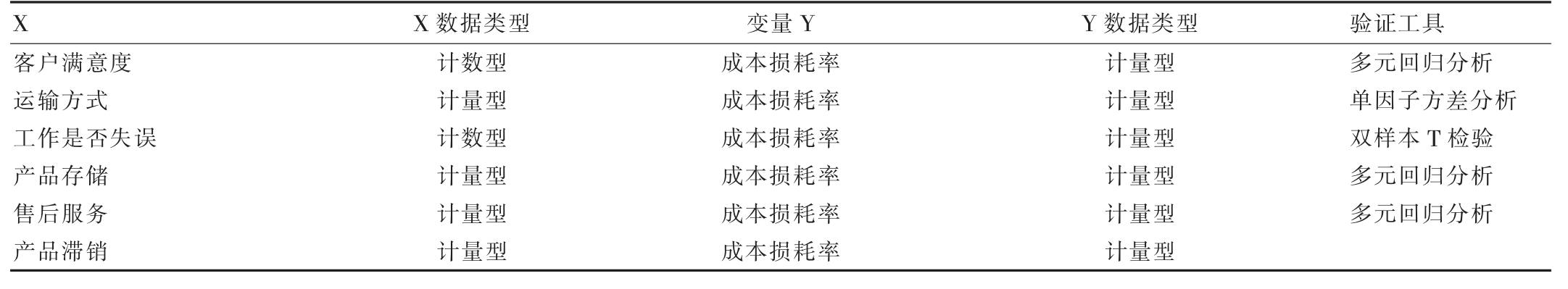 表1 成本损耗率y 的关键因子X 验证