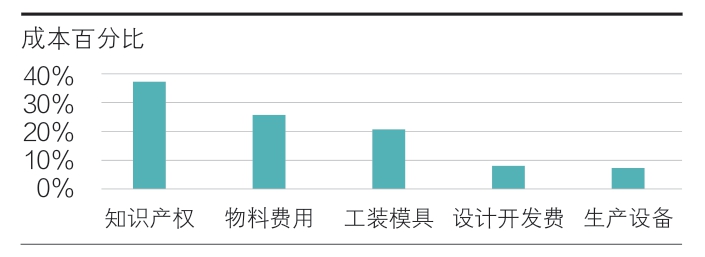 按目前设计方案、项目规划的总产量以及供应链的初步报价,对软顶系统的零件单车成本进行分类,并按百分比进行排序。从图9可看出占80%成本的类别为知识产权费、物料费用和工装模具费,这类成本为重点研究对象。
