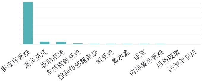 按零件的成本占比进行排序。从图10可以看出,多连杆系统、篷布系统和驱动系统的成本之和占比超过80%,也是重点研究对象。
