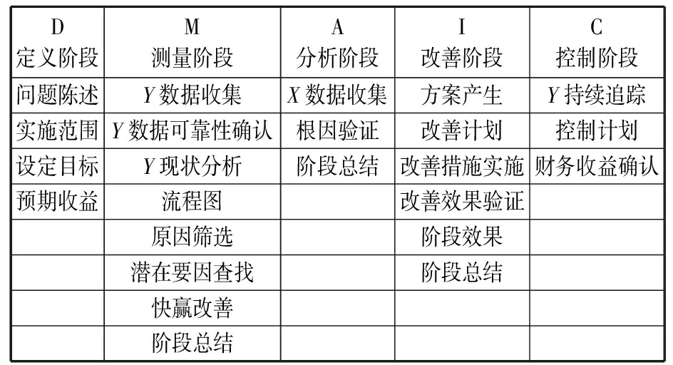 表1 DMAIC路线图