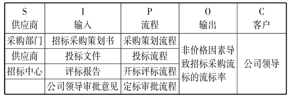 精益六西格玛是将精益和六西格玛的方法论和工具融合在一起的流程改善方法论。精益六西格玛DMAIC包括五个实施阶段:定义阶段(DEFINE)、测量阶段(MEASURE)、分析阶段(ANALYZE)、改善阶段(IMPROVE)和控制阶段(CONTROL)。本文主要研究通过DMAIC五个阶段的实施,改善招标采购的相关流程,有效降低非价格因素的流标率。