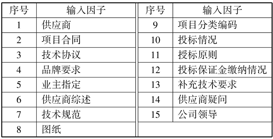 针对167项输入因子通过招标方式、投标规范性、招标策划充分性、投标技术要求、投标商务要求、业主指定、领导审批等7个维度进行因果矩阵分析(见表5),通过分数断裂分层的方法梳理出15项占比较大的输入因子,见图2和表6。