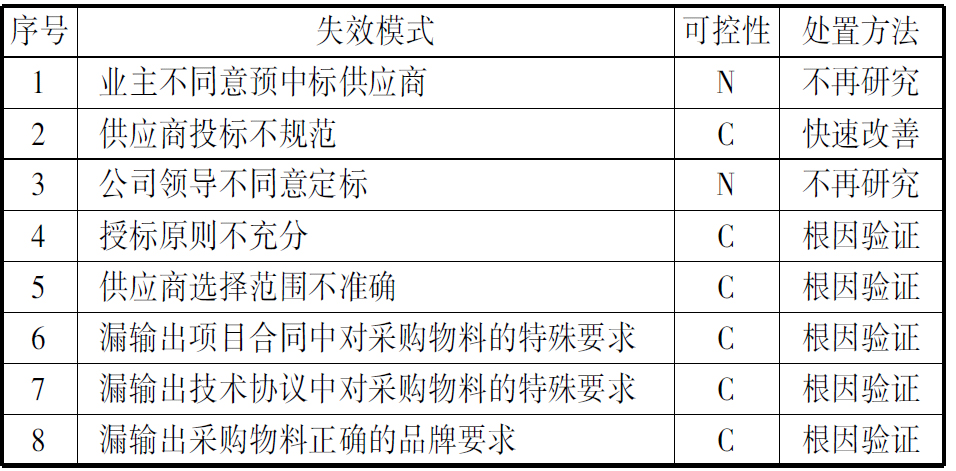 表7 潜在失效模式和效果分析