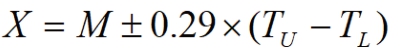 计算出理论最佳首件设定值,式中:Δ为分布中心和公差中心的绝对偏移量;TU为公差上限;TL为公差下限;X为设定值;M为公差中心。则首件尺寸设定值: