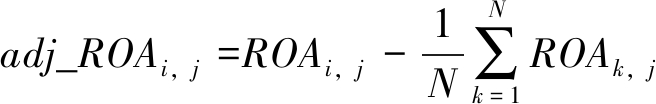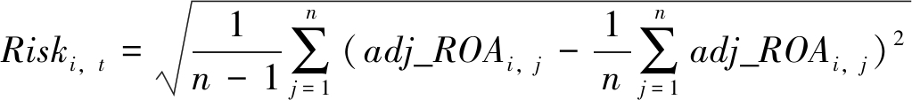 其中,n取值为3,ROA为企业在相应年度的息税前利润与总资产的比率,adj_ROAij为经行业均值调整的ROA,根据调整后的ROA,滚动计算3年期的ROA的标准差;N表示行业样本数量。