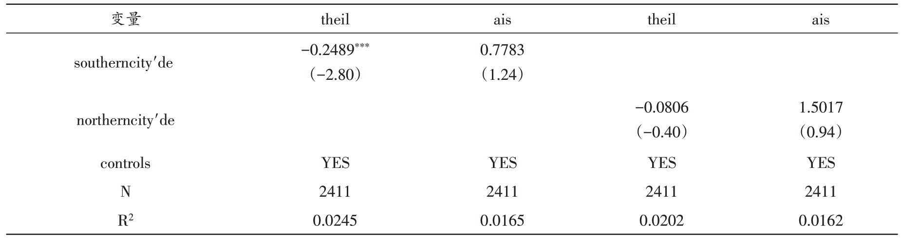 近年来,区域发展差异在南北方之间尤为突出,对此,本文在考察数字经济影响产业结构转型升级的区域异质性时也尝试从南北方视角展开。与传统的地理南北划分有所不同,本文借鉴盛来运等(2018)的处理方法,①从经济地理视角对南北区域进行划分。②同时,为了避免分组回归导致样本量减少给估计结果带来的偏误,本文分别以南方地区和北方地区虚拟变量同数字经济进行交互后回归,结果显示,③数字经济仅显著促进了南方地区产业结构合理化,对产业结构高度化不存在明显的区域差异。