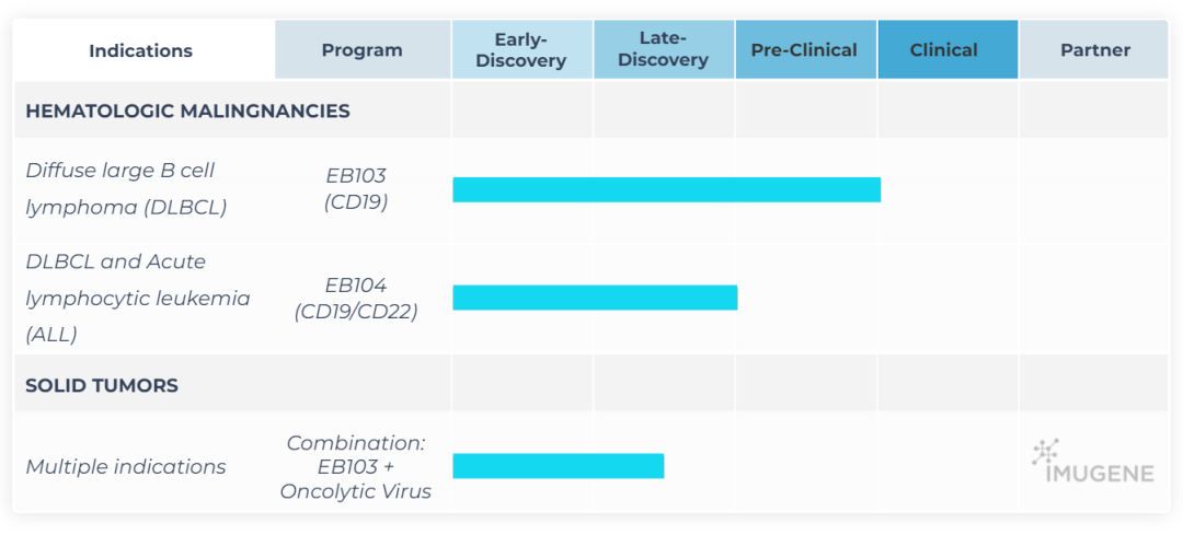 Estrella,作为一家临床前阶段生物制药公司,根据特定许可协议开发针对 CD19的 ARTEMIS®️ T 细胞疗法,能够解决血癌和实体瘤患者的治疗挑战。Estrella 的主要候选产品 EB103,一种 CD19 重定向的 ARTEMIS®️ T 细胞疗法,靶向 CD19,一种在几乎所有 B 细胞白血病和淋巴瘤表面表达的蛋白质。Estrella 还在开发 EB104,这是一种 CD19/22 双重靶向 ARTEMIS®️ T 细胞疗法,它同时靶向 CD19 和 CD22,一种在成熟 B 淋巴细胞表面表达的蛋白质。EB103 和 EB104 使用了 Estrella 今年早些时候从 Eureka Therapeutics, Inc.获得许可的 ARTEMIS®细胞受体平台技术。Estrella 还与 Imugene Ltd 及其候选产品合作。