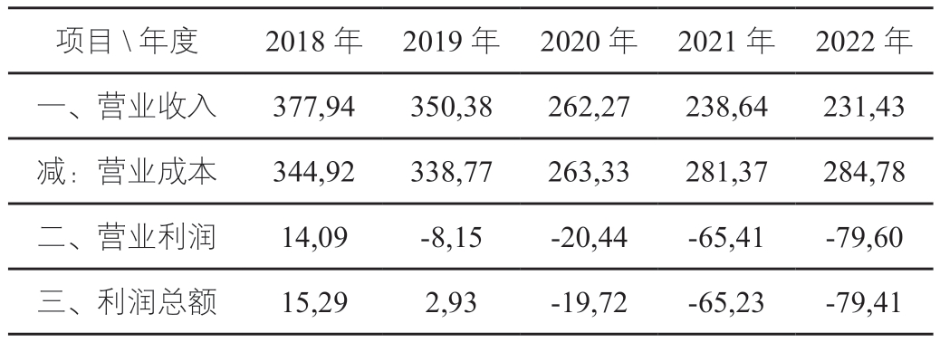表1 2018—2022年生产经营状况及损益情况表 单位:万元