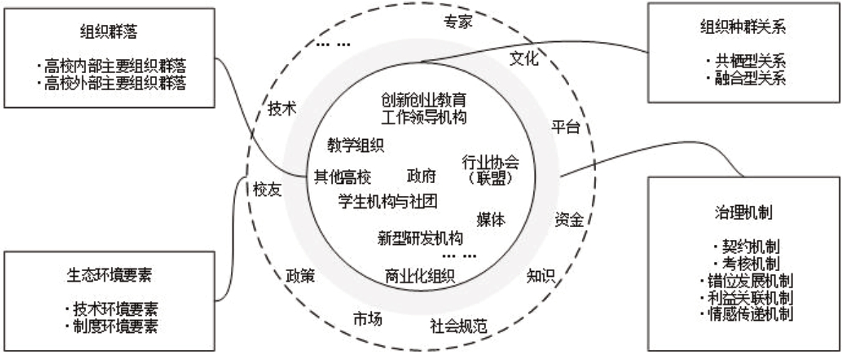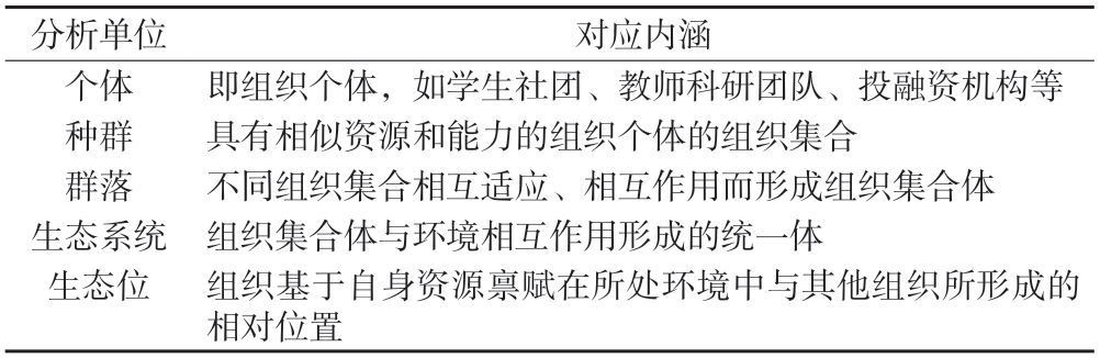 表1 组织生态视角下高校创新创业生态系统治理体系的分析单位及其简要内涵