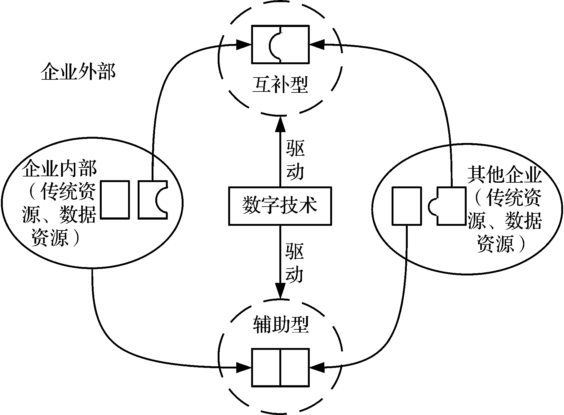 命题2 数字创业企业竞合战略既有助于外向型资源整合,又有助于内向型资源整合(2)。