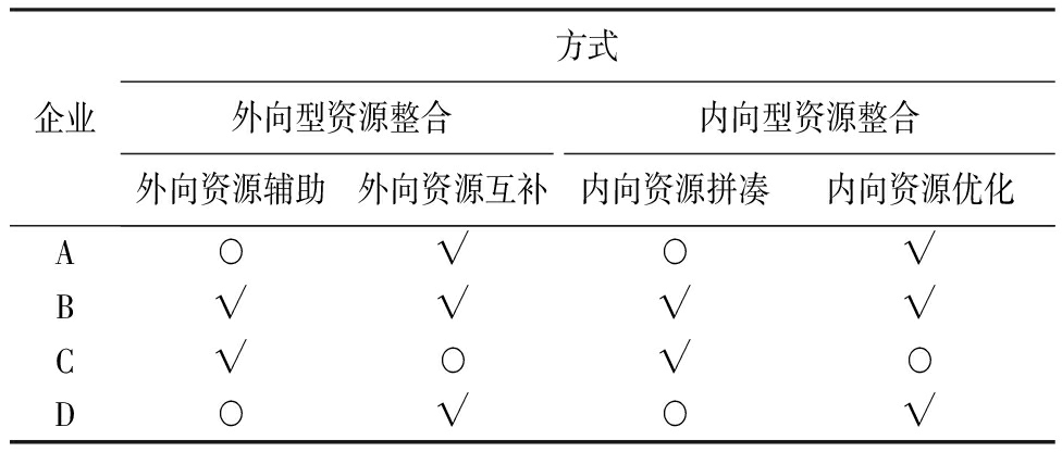 注:√代表采取该种类型资源整合,○代表未采取该种类型资源整合。
