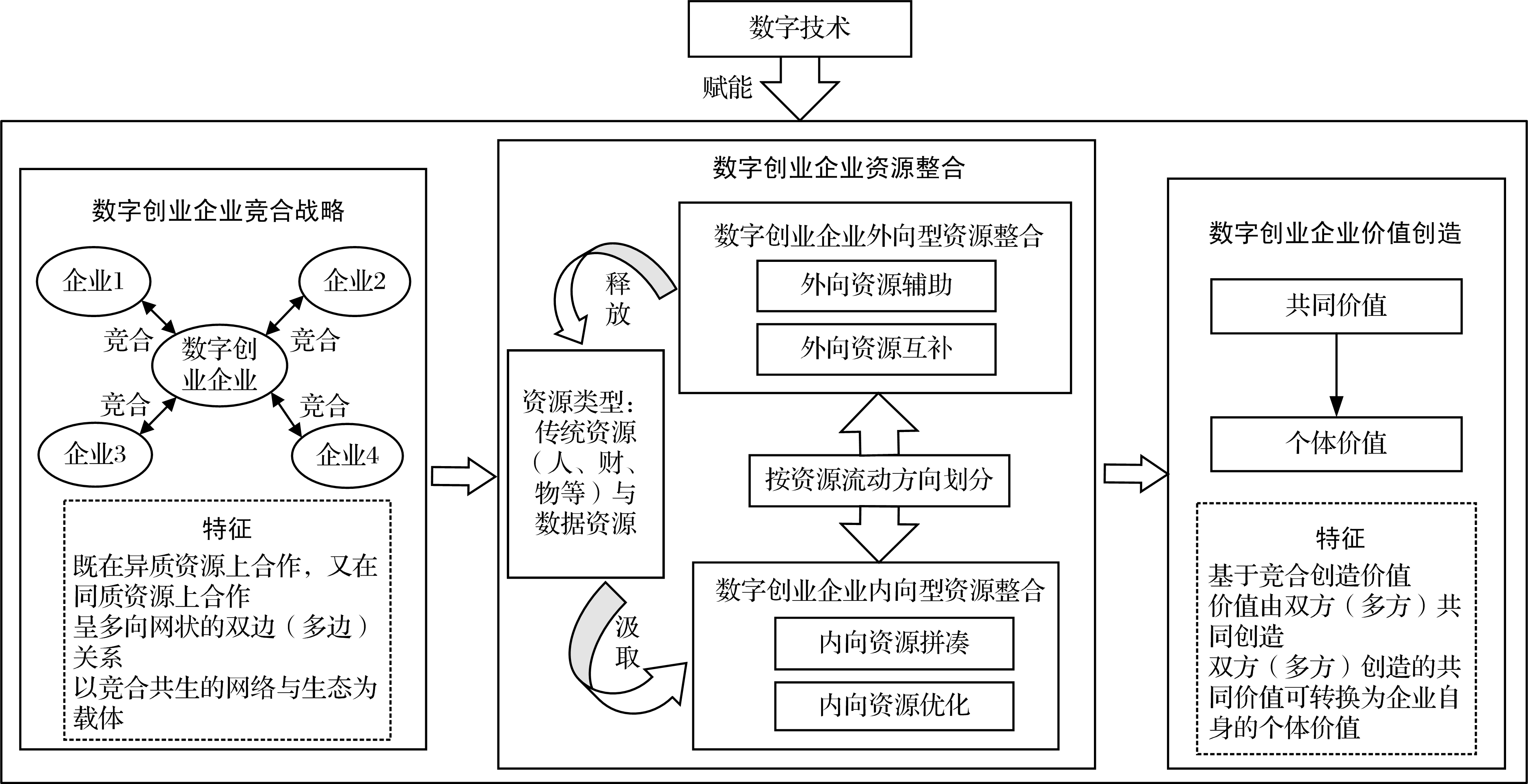 命题3 数字创业企业竞合战略通过外向型资源整合实现共同价值,通过内向型资源整合实现个体价值。