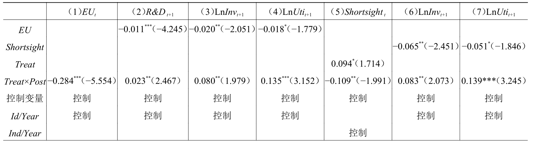 表5 基于经营环境不确定性和管理层短视行为的影响机制检验