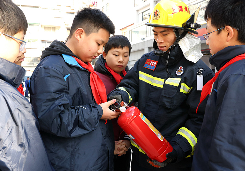 当日,上海市长宁区消防救援支队开展了一场特殊的消防救援实操课,一些初中生在消防救援站通过演练火场逃生、学用干粉灭火器、体验消防装备器材等环节,学习消防灭火自救技能。