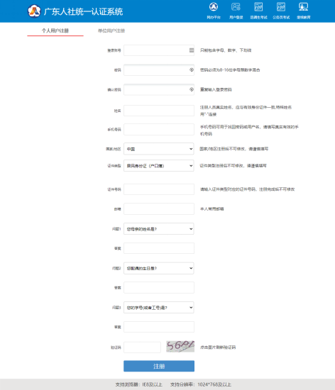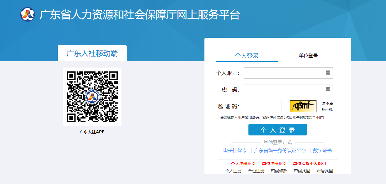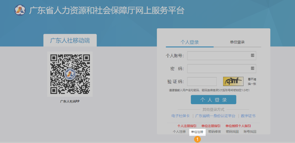 (1)单位账户的操作人员,必须先进行个人用户注册(如果操作人员已有广东省人力资源和社会保障厅网上服务平台的个人账户,可以直接进行第(3)步)。个人用户注册请点击“注册地址”。