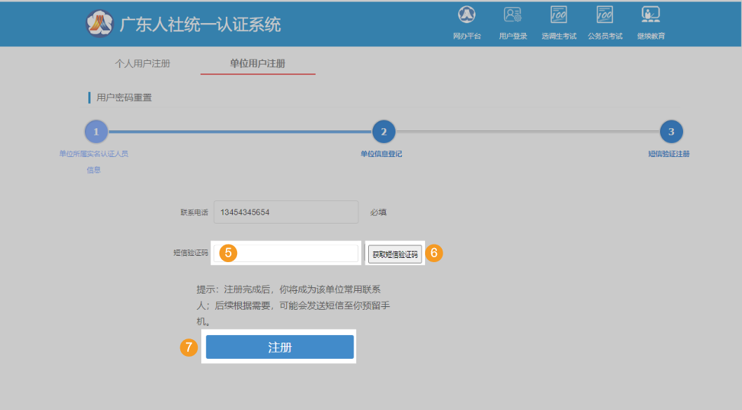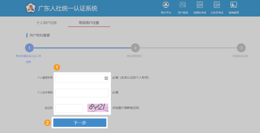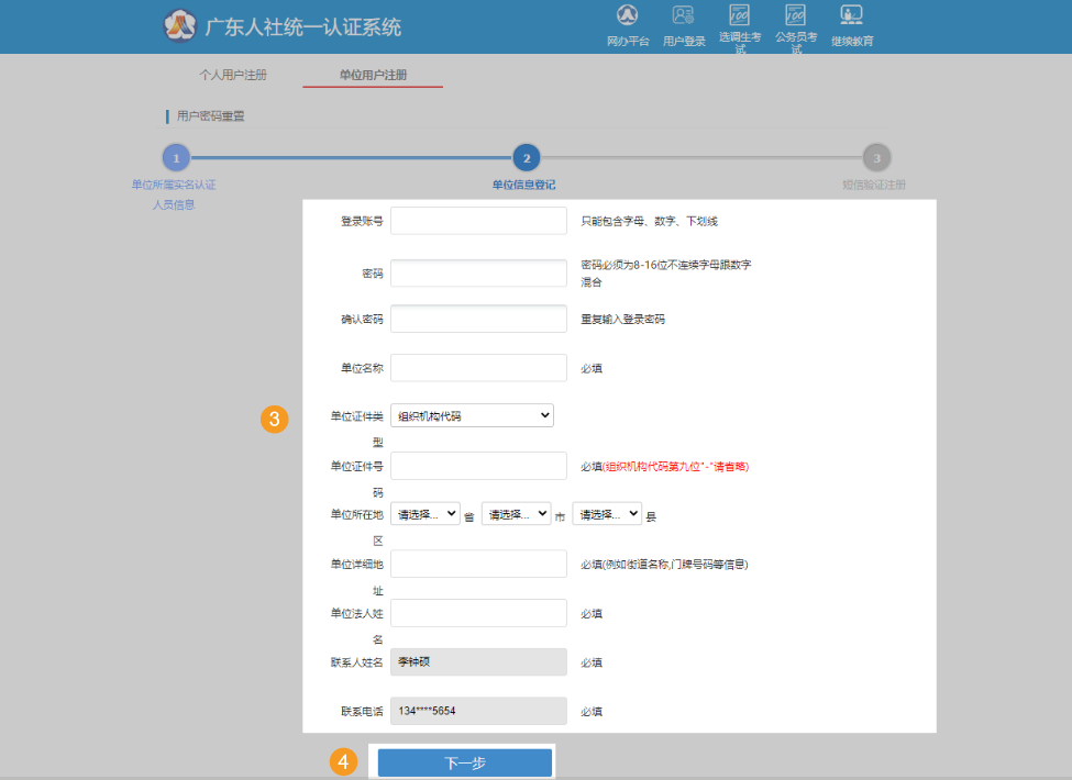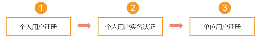 (3)完成个人用户实名认证后,可以开始进行单位用户注册。