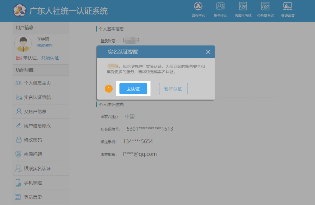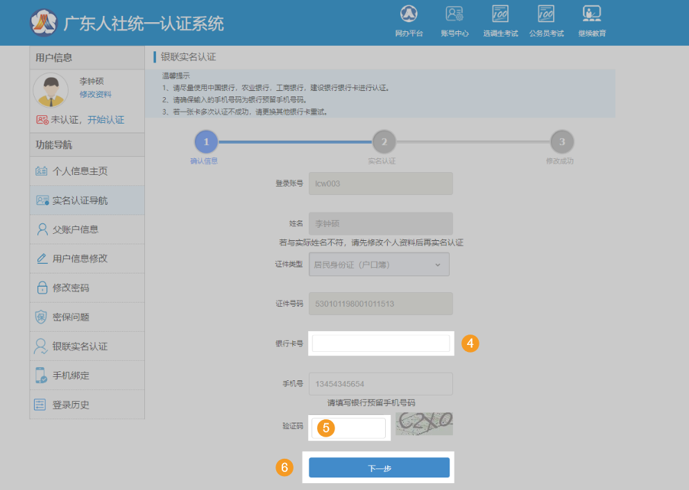 (2)提交个人用户注册申请后,接下来进行个人用户实名认证。