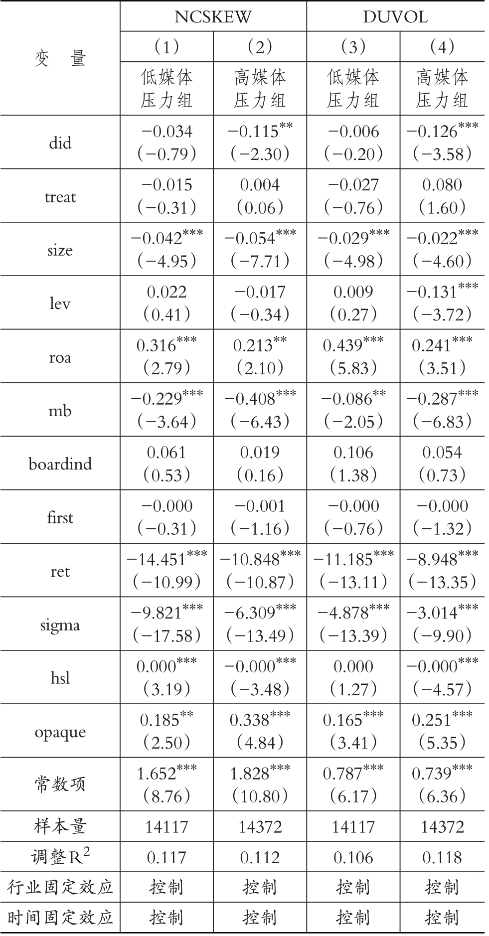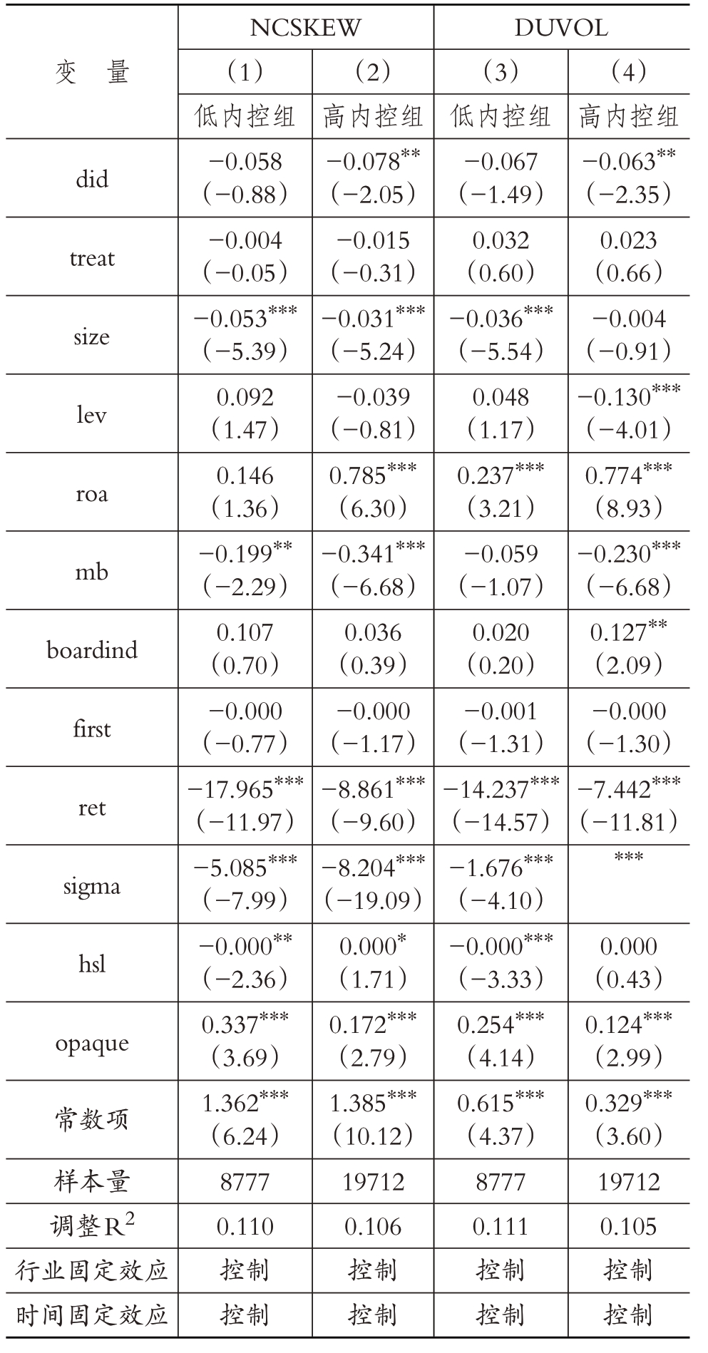 综上所述,本文提出H 1:绿色信贷政策降低了企业的股价崩盘风险。