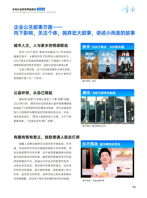 此外,《报告》最后总结道,在信息时代,公共表达显得尤为重要。为了更有效地传达信息和影响他人,我们需要将要素进行升级,将“故事+情感+价值观” 这些因素有机融合,实现更加务实、理性、创意的公关表达,以小见大,通过展现真情实感触动受众内心。