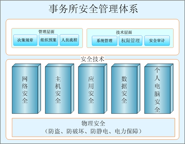 (5)技术层面:三权分离机制,系统管理员负责机构权限分配、权限管理员负责权限分配、安全审计员进行日志审阅。