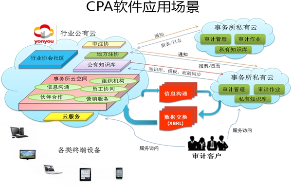 根据中注协《中国注册会计师行业信息化建设总体方案》要求,用友审计软件公司(以下简称“用友公司”)以“CPAS审计信息系统”命名,确立了系统建设目标,CPAS审计信息系统总体设计架构图如图1。