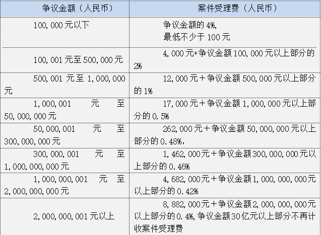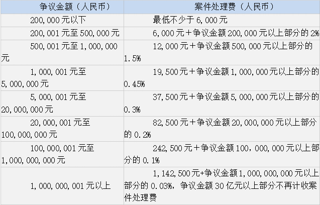 本费用表适用于本仲裁规则第三条第(二)款第3项所规定的仲裁案件