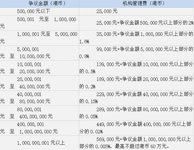 5.收取的案件受理费、机构管理费为非港币时,仲裁委员会香港仲裁中心按照机构管理费用费表的规定收取与港币等值的外币。