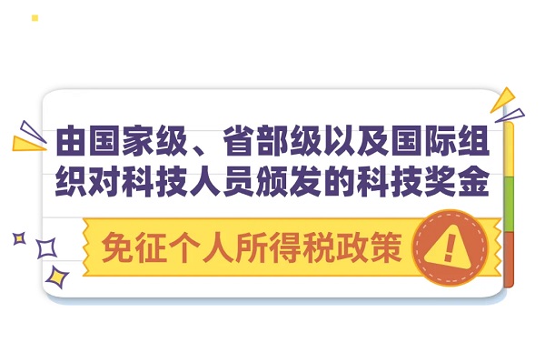 省级人民政府、国务院部委和中国人民解放军军以上单位,以及外国组织、国际组织颁发的科学、技术方面的奖金,免征个人所得税。