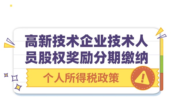 自2016年1月1日起,全国范围内的高新技术企业转化科技成果,给予本企业相关技术人员的股权奖励,个人一次性缴纳税款有困难的,可根据实际情况自行制定分期缴税计划,在不超过5个公历年度内(含)分期缴纳,并将有关资料报主管税务机关备案。