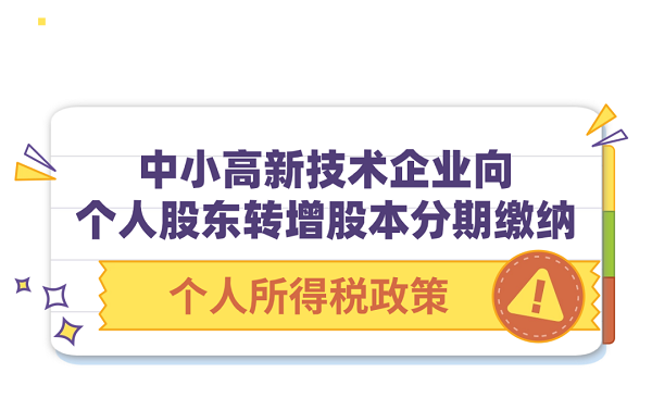 自2016年1月1日起,全国范围内的中小高新技术企业以未分配利润、盈余公积、资本公积向个人股东转增股本时,个人股东一次缴纳个人所得税确有困难的,可根据实际情况自行制定分期缴税计划,在不超过5个公历年度内(含)分期缴纳,并将有关资料报主管税务机关备案。