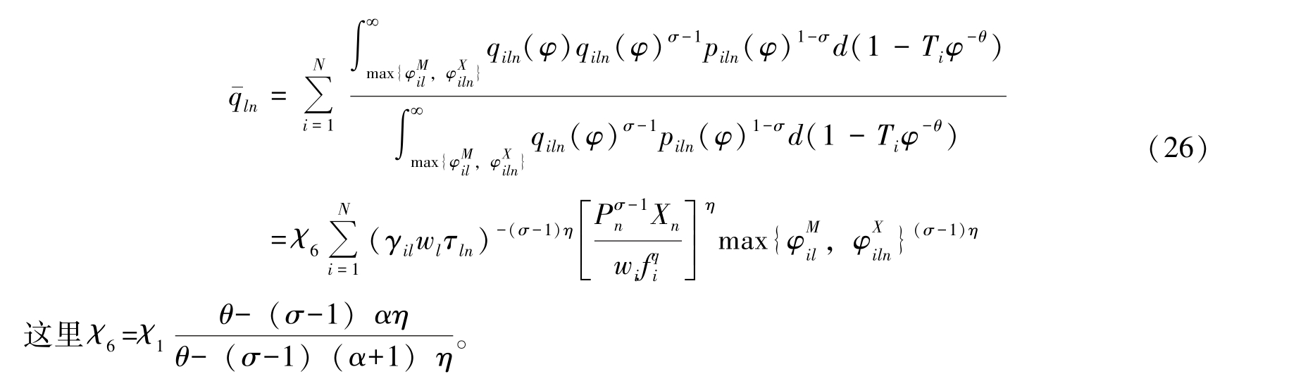 代表生产率分布的下界,以保证生产率的帕累托分布在数字上有意义。为了简化均衡条件,本文假设企业可以在除东道国以外的国家进行生产活动,并且企业在其他外国分支机构生产的产品在消费者偏好水平上是有差异的。也就是说,一个企业可以生产两种不同的产品:一种在东道国生产,另一种在其他外国分支机构生产。