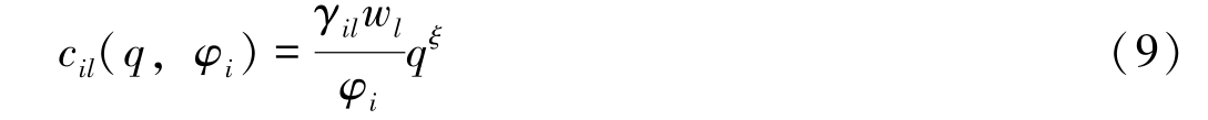 其中, ξ≥0 意味着生产高质量产品需要付出更高的可变成本。 wl 代表生产地l 的工资水平,工资越高生产的单位成本越高。 qξ 代表产品质量的幂,表示生产较高质量的产品需要的单位成本也较高。