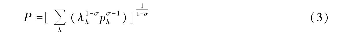 其中, λh、 qh 分别代表产品h 的质量和数量,则该产品的价格指数为: