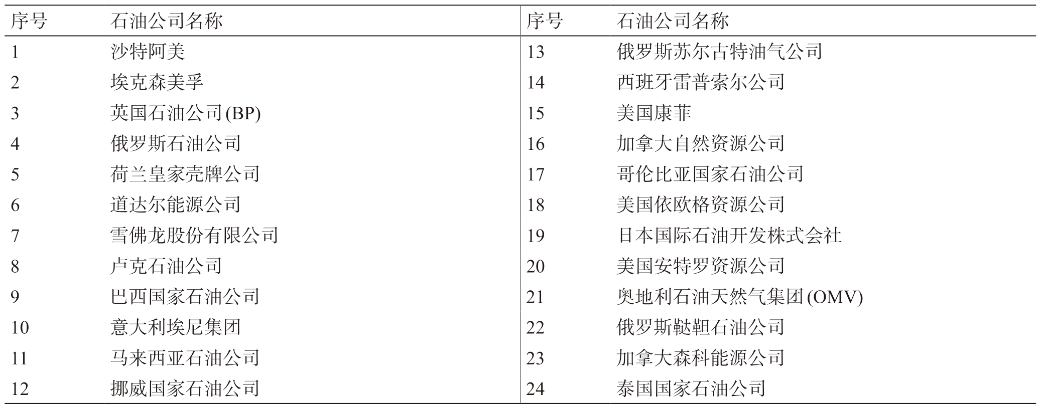 表2 国际石油公司选取