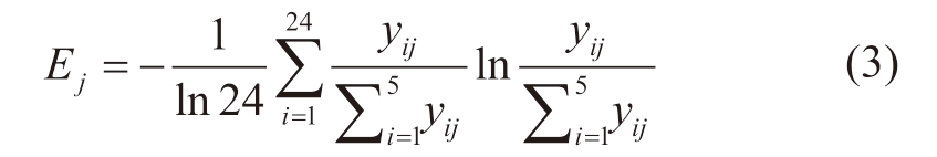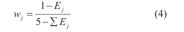 式中,wj即为指标 j 的权重,Ej为式(3)所求得指标 j的信息熵。