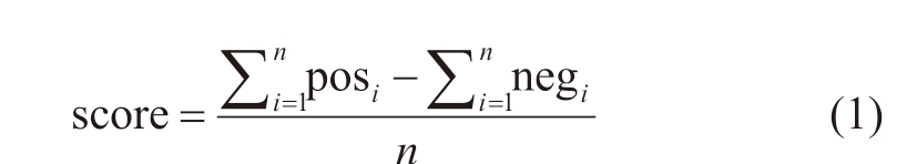 式中,score为公司积极情绪倾向平均分;n为总语句数;posi为第i条语句的积极得分值;negi为第i条语句的消极得分值。