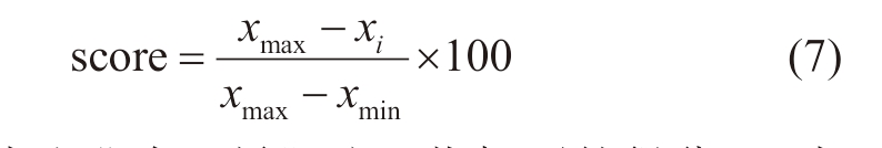 式中,score为企业在“果”这一指标下的得分;xi为各企业平均净碳强度变化率;xmax为各企业中平均净碳强度变化率中的最大值;xmin为各企业中平均净碳强度变化率中的最小值。