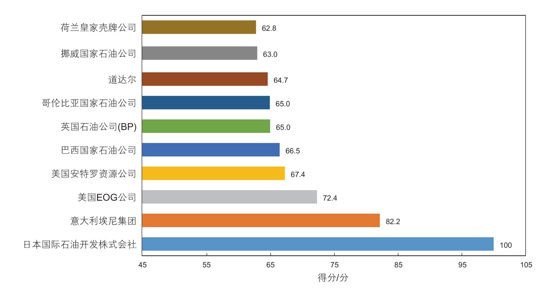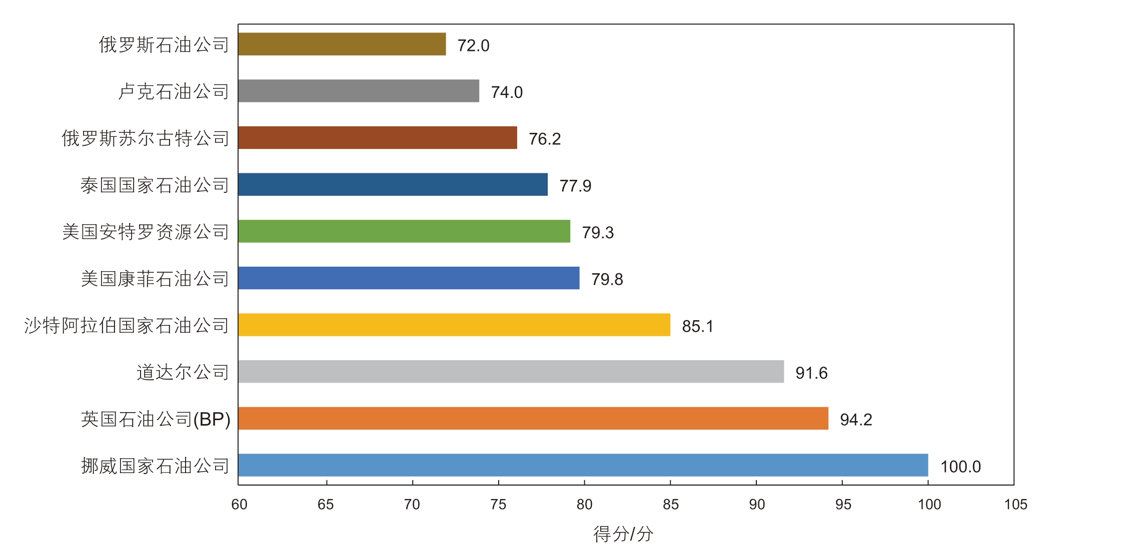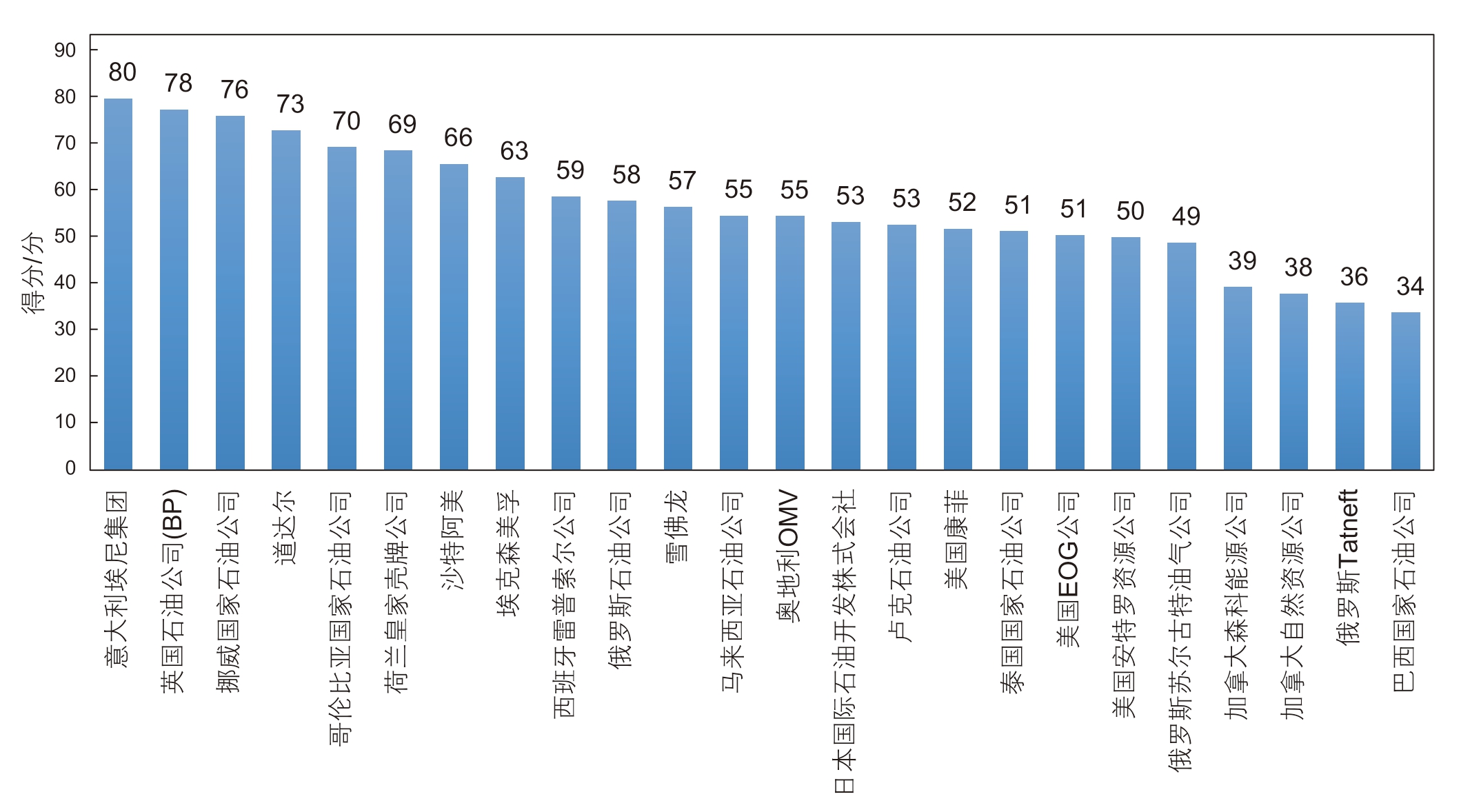 图5 国际石油公司应对气候变化的效果评价排名前十的公司