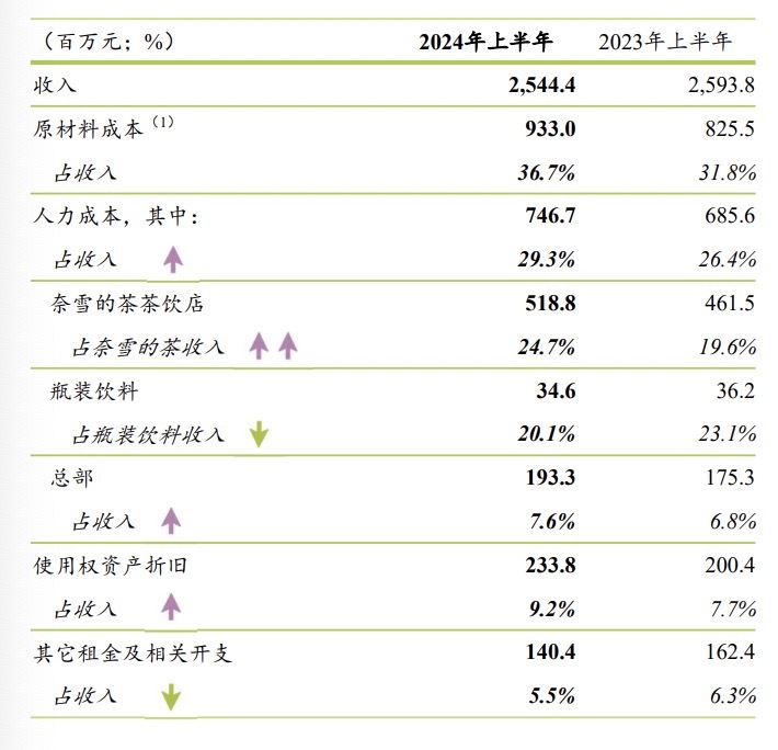 奈雪在公告中表示,今年上半年消费需求情况叠加2023年1月至4月的高基数,集团盈利能力出现明显下滑。计划在保持中、后台总成本基本不新增的前提下,适当提高营销力度,并且继续维持研发力度。