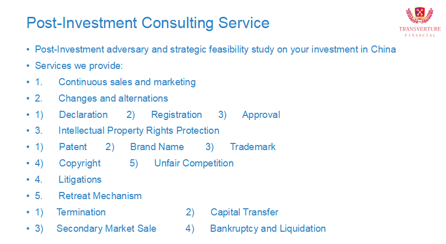 | Pre-In-Post Investment Consulting Service当前您所在的位置:首页 > 服务 > 企业服务