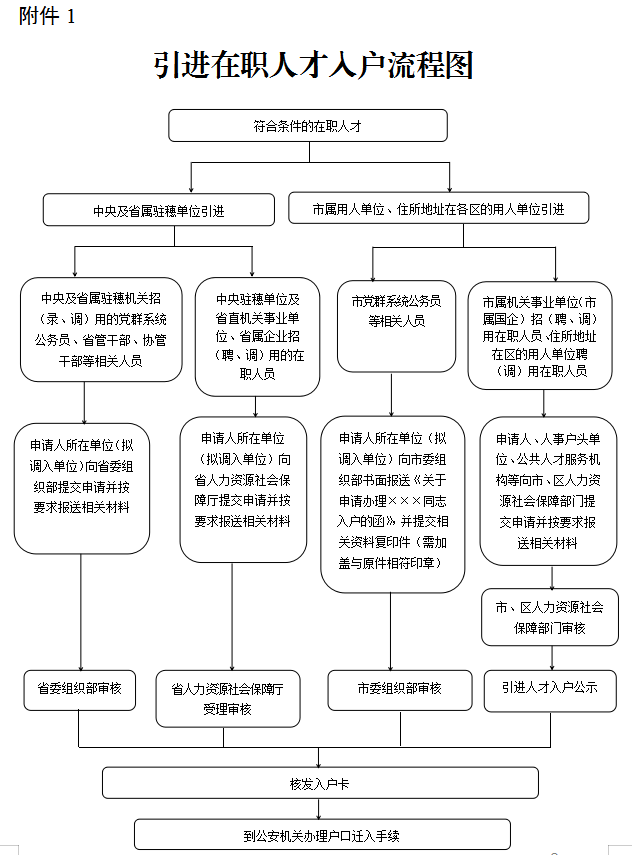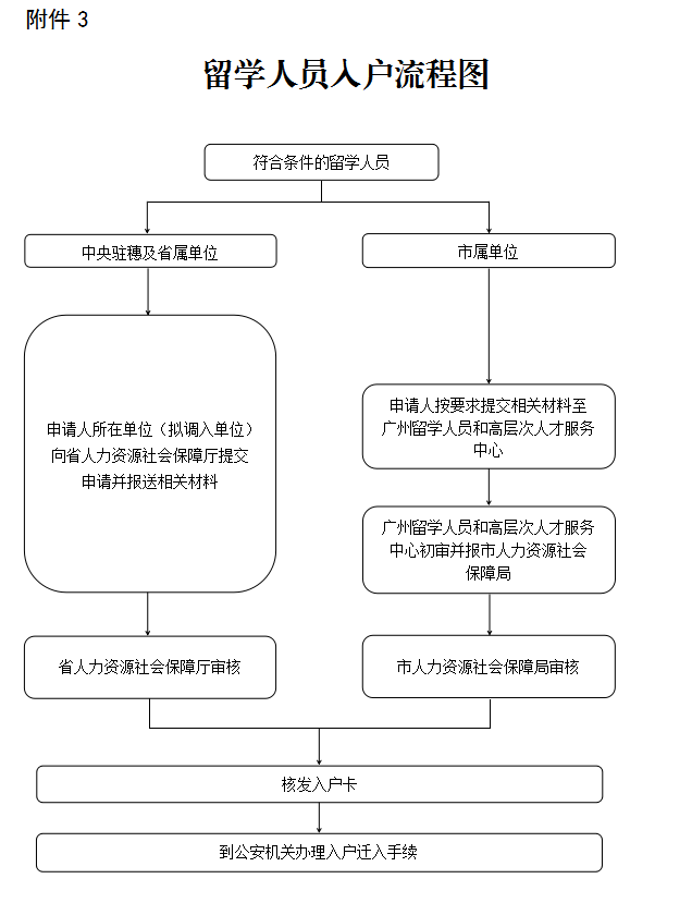 省直及中央驻穗用人单位引进人才及其入户指标按职责分工由省发展改革部门统筹协调及管理;省直及中央驻穗用人单位引进在职人才(包括国〔境〕外留学人员)入户由省人力资源社会保障部门按职责分工审核办理。