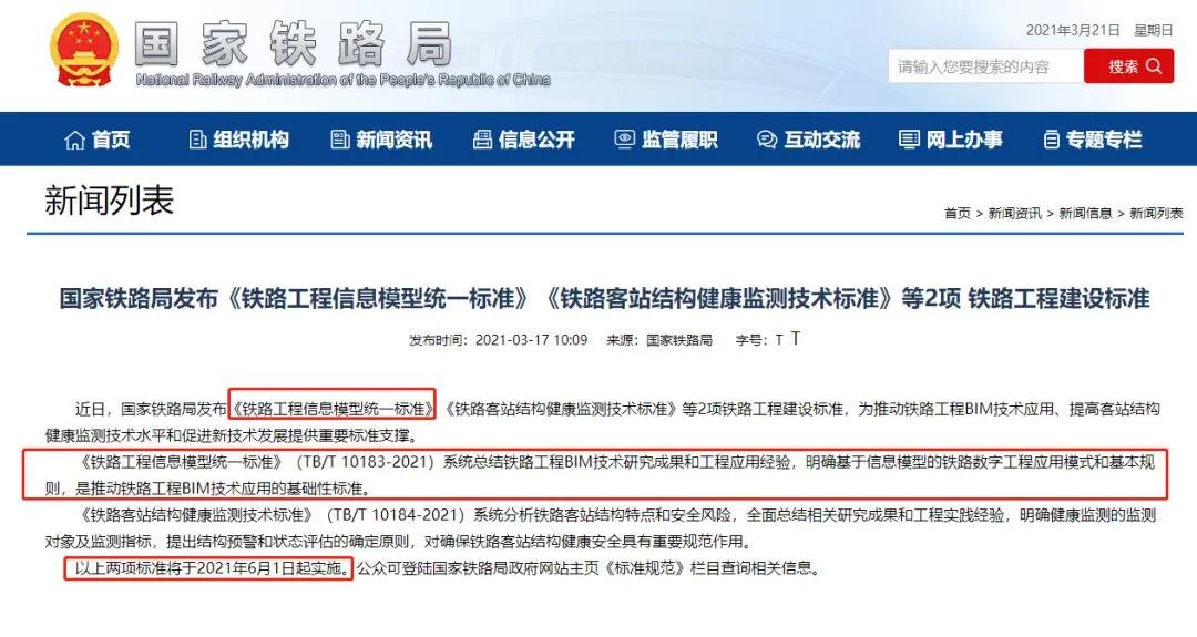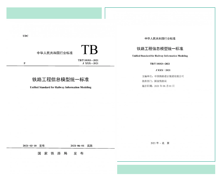 现公布《铁路工程信息模型统一标准》(TB/T 10183-2021)、《铁路客站结构健康监测技术标准》(TB/T 10184-2021)、《邻近铁路营业线施工安全监测技术规程》(TB 10314-2021)等3项铁路工程建设标准,自2021年6月1日起实施。以上标准由中国铁道出版社有限公司出版发行。